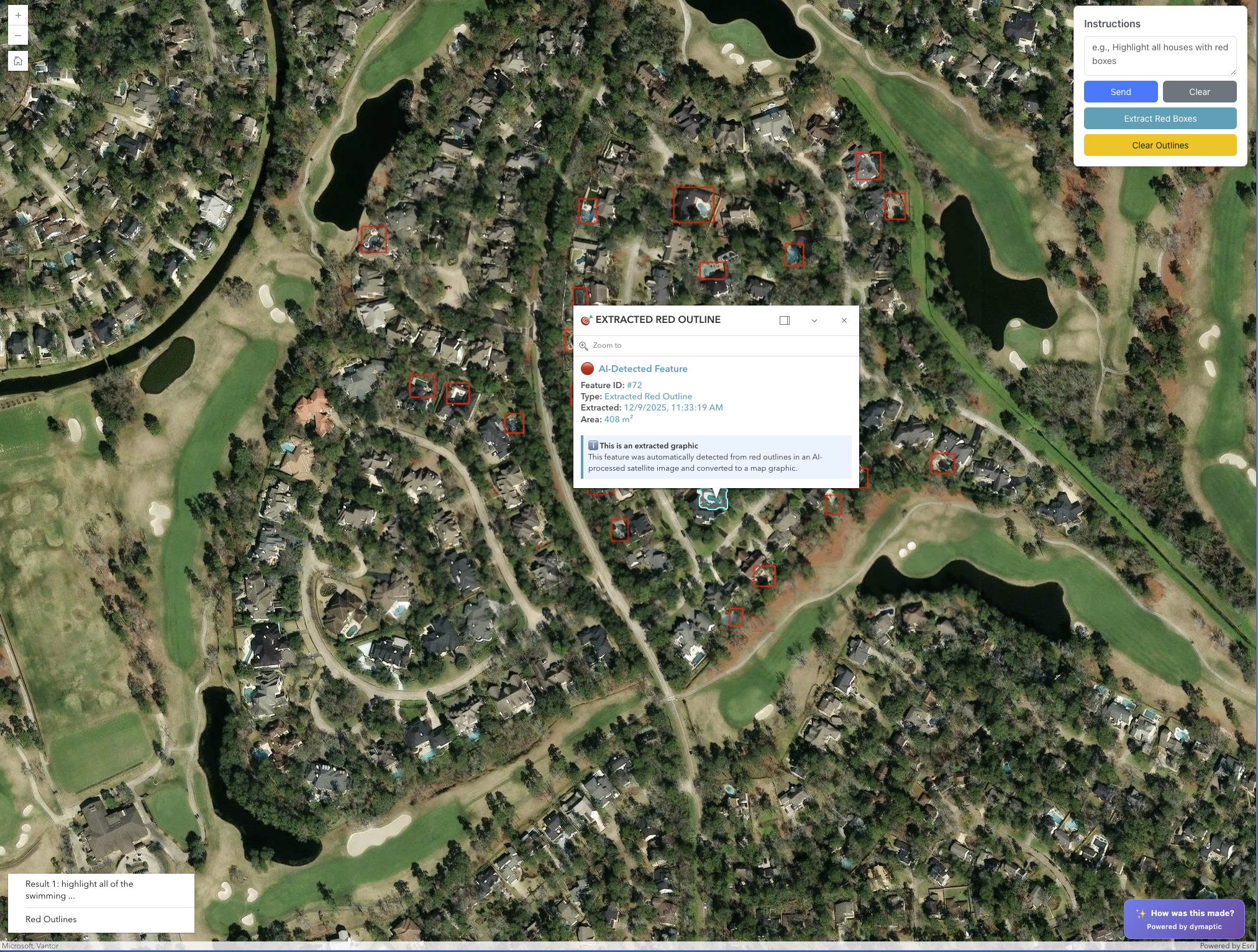 When Gemini draws those red boxes, it's just returning a PNG. Those are just red lines in an image; they are not features that I can click on or interact with. So I wondered: could I use standard GIS raster processing tools to extract the red lines and convert them into features?