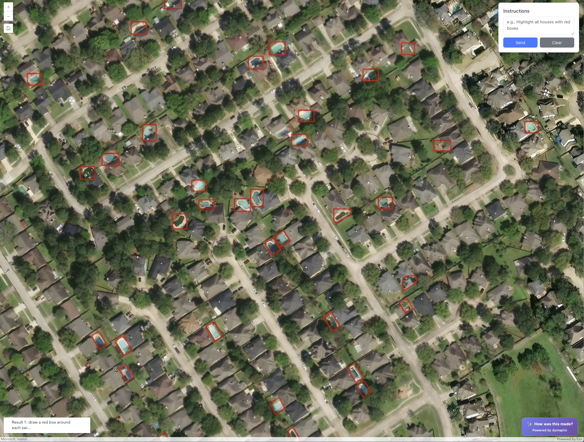 TL;DR - You can send satellite imagery to an LLM, ask it to "draw a red box around every swimming pool," and then extract those red boxes as vector features. No GPU required. No domain-specific training. Just an API call and some image processing.